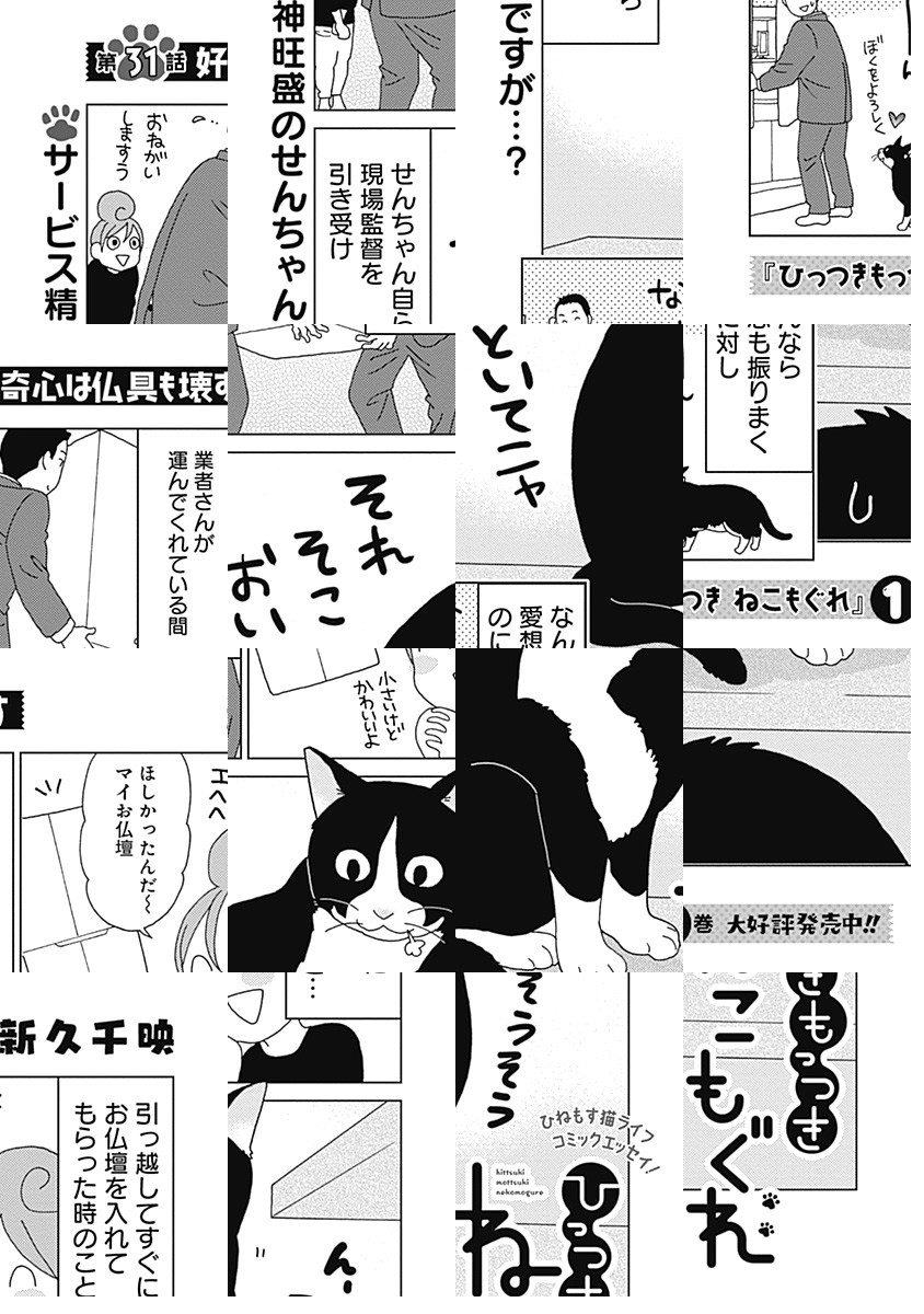 猫密度も愛くるしさも前作『ねこびたし』から大幅パワーアップ! 新久千映先生を癒して惑わす、おっとり大柄猫のせんちゃんと小悪魔いたずら好きつぶちゃんの面白可愛いエッセイコミック・新シリーズ!!