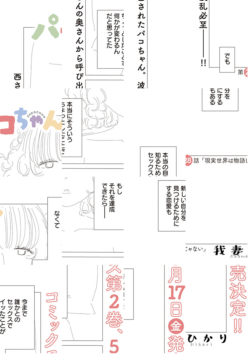 【コミックス①巻の続きは第12話から!】 三十路間近のフリーター・パコちゃん。サービス精神旺盛でセックスが大好き。でも、寂しがり屋で繊細で。ちょっと不健康。 そんな月並みメンヘラ女子の、ただひとつの物語ーー。 人間の“性(せい)”と“性(さが)”を描く。我妻ひかり、衝撃の初連載!!