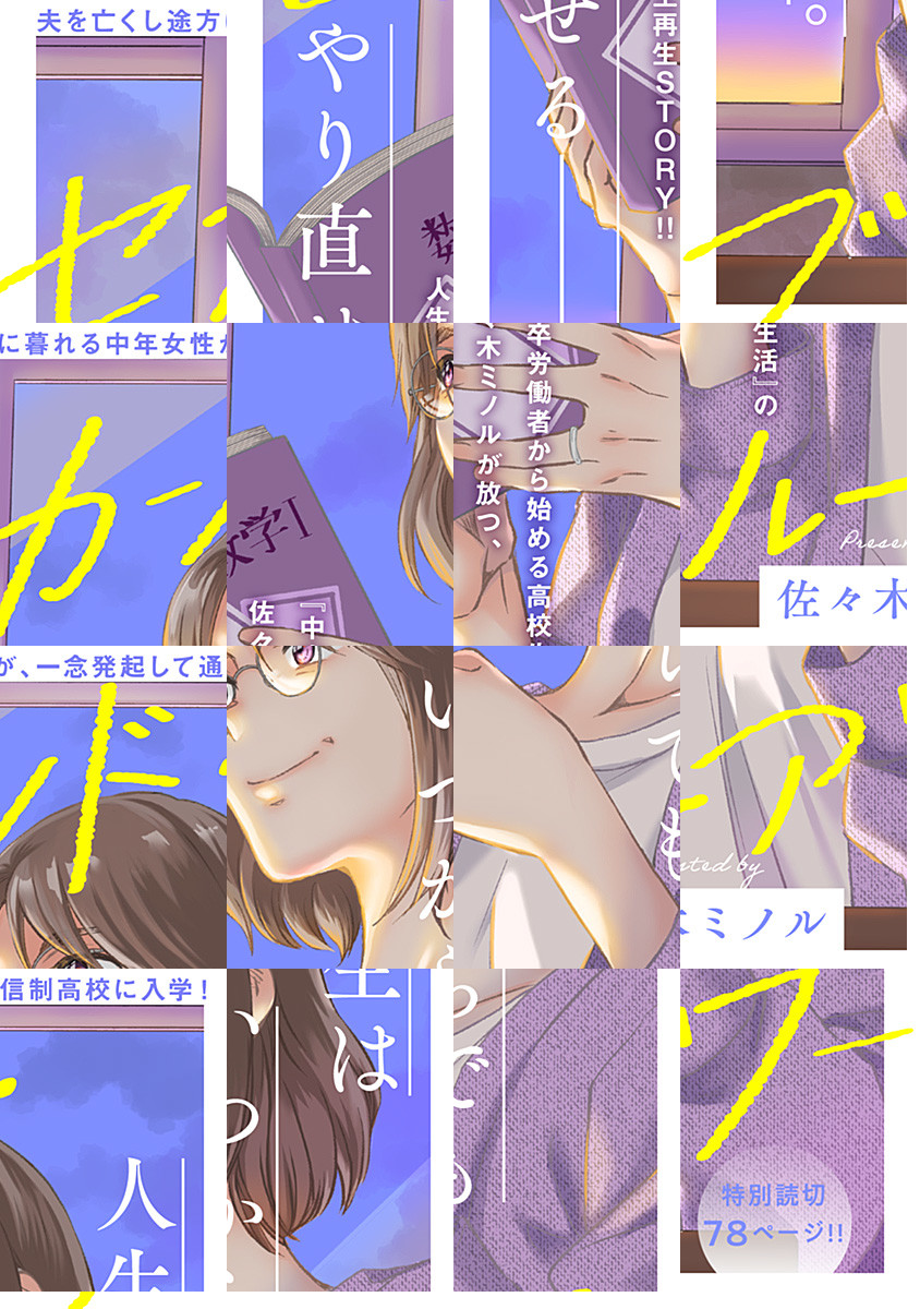 夫を亡くして早2年ーー。未だショックから立ち直れずにいた綿貫千梨子(47歳)は、人生を立て直すべく通信制高校への入学を決意! ところが、入学初日から早くも後悔することに…!? 『中卒労働者から始める高校生活』の佐々木ミノルが放つ、珠玉の人生再生STORY!!