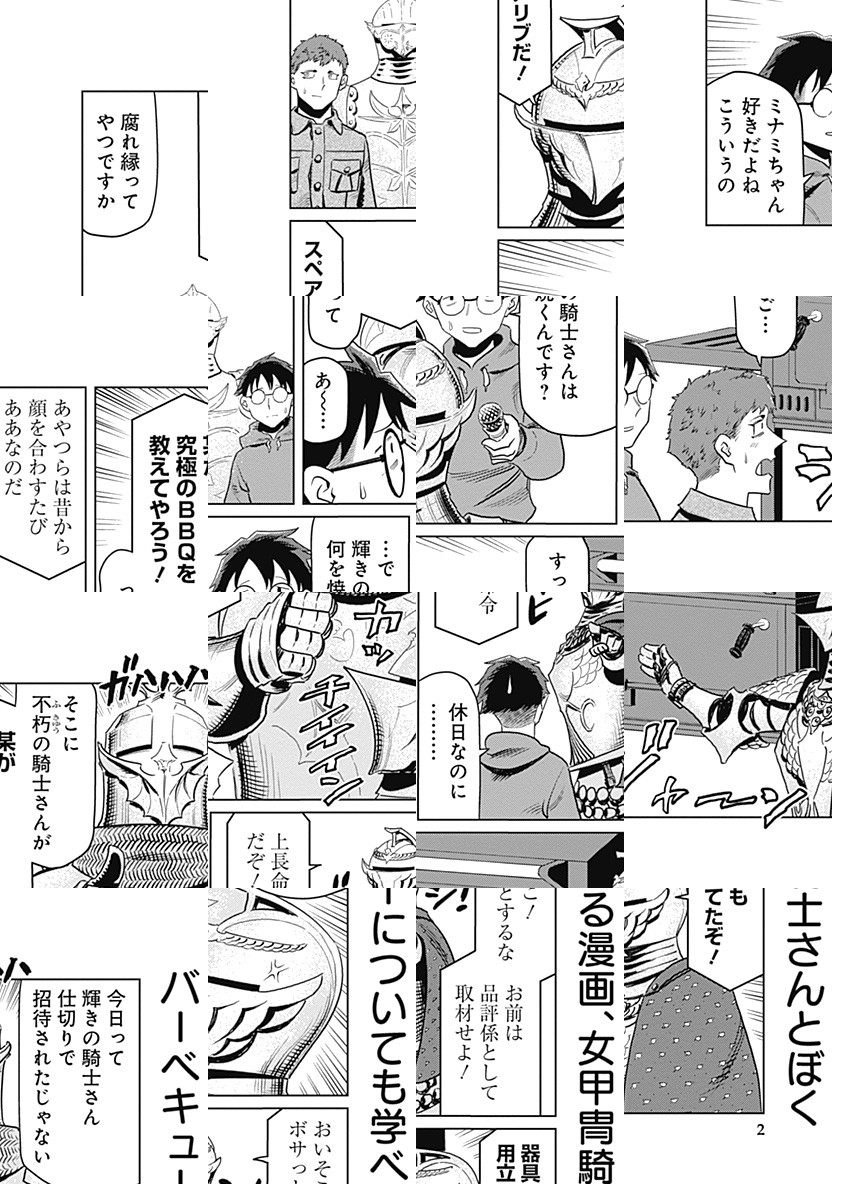 どこにでもいるオタクなサラリーマンの「ぼく」。 ルームシェア相手の先輩が突然旅立ち、代わりにやってきたのは――「女甲冑騎士さん」!?高潔なる存在との暮らしがオタクの人生を豊かにしていく――。新感覚アーバンファンタジー、開幕!!