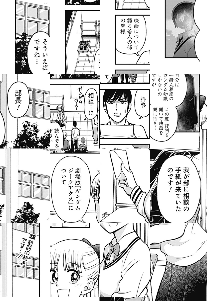 邦画プレゼン界の大立者! 『邦キチ』が孤高のシーズン15で華麗に舞う!! 今回も「映画について語る若人の部」を舞台に、国宝級の邦画中毒女子高生・邦キチが、まずまずの洋画好きな部長・洋一を相手に絶妙なチョイスの邦画(一部例外アリ)を愚直にプレゼン!プレゼン!!プレゼン!!! その視点、その愛情、その圧力ーー。全てにおいてシーズン14を凌駕ッ!! 銀河系初の邦画プレゼン漫画、すでに伝統芸能の域です…!! 【※映画について語る若人の部への映画相談も、「ファンレターを送る」からご応募ください。質問の冒頭に【映画相談】とタイトルを付けて、ペンネームも忘れずにご記入ください。(例:【映画相談】 P.N. ホウキチ)※質問を漫画で紹介する際は、質問内容を一部変更させていただく場合がございます。】