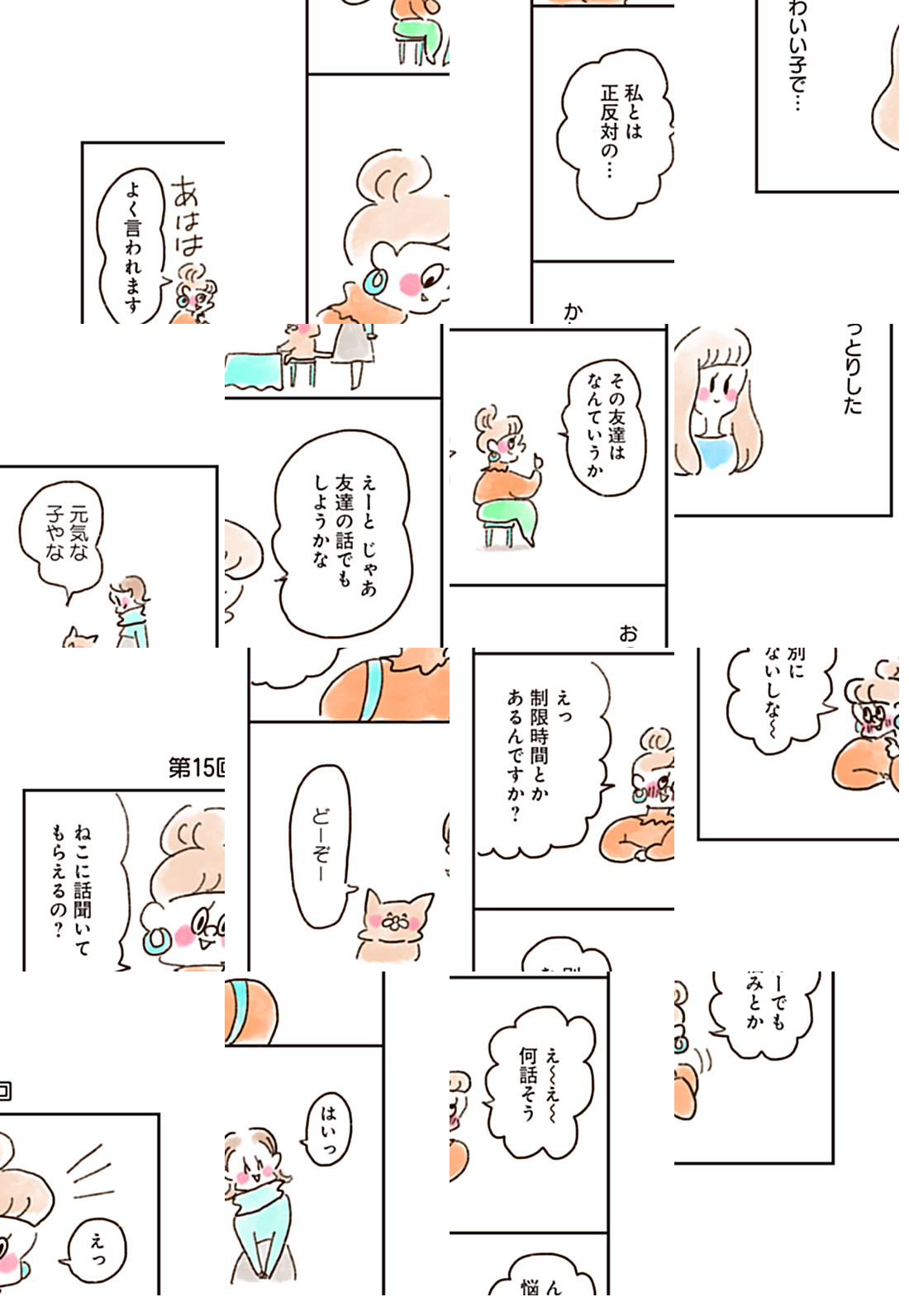 ねこさんが開いた「話聞きます」屋さん。そこを訪れる様々な人たちのグチや悩みをねこさんが聞いてくれて、何だか心が軽くなっていくお話。ねこでよければ話聞くで~。