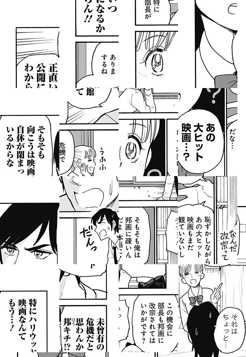 邦画プレゼン界の大立者! 『邦キチ』が孤高のシーズン15で華麗に舞う!! 今回も「映画について語る若人の部」を舞台に、国宝級の邦画中毒女子高生・邦キチが、まずまずの洋画好きな部長・洋一を相手に絶妙なチョイスの邦画(一部例外アリ)を愚直にプレゼン!プレゼン!!プレゼン!!! その視点、その愛情、その圧力ーー。全てにおいてシーズン14を凌駕ッ!! 銀河系初の邦画プレゼン漫画、すでに伝統芸能の域です…!! 【※映画について語る若人の部への映画相談も、「ファンレターを送る」からご応募ください。質問の冒頭に【映画相談】とタイトルを付けて、ペンネームも忘れずにご記入ください。(例:【映画相談】 P.N. ホウキチ)※質問を漫画で紹介する際は、質問内容を一部変更させていただく場合がございます。】
