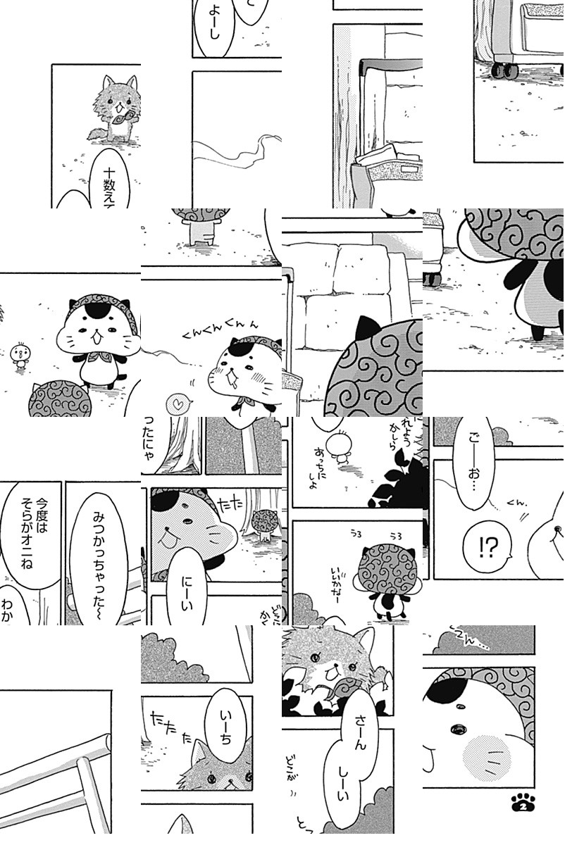 おそろいの唐草の風呂敷を身につけた仲良しねこ、そら・ちょこ・くろまめの3匹は食べることと遊ぶことが大好き~! たまにイタズラもしちゃうけど、人助けしたり拾い物を届けてあげたり…抜けてるけど心優しいねこたちの、ほのぼの癒しマンガ♡