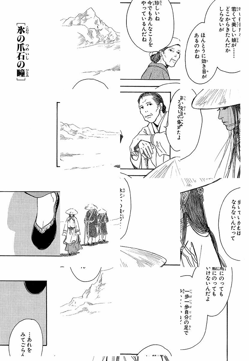 人間と“鬼人”が共存する不思議な世界を舞台に、今市子ならではの美しい筆致で緻密に綴られるオリエンタルファンタジー『岸辺の唄』シリーズ。誰もが生きるために必要不可欠な「水」を巡って巻き起こる様々な事柄に翻弄されながらも、力強く生き抜く人々を描く。