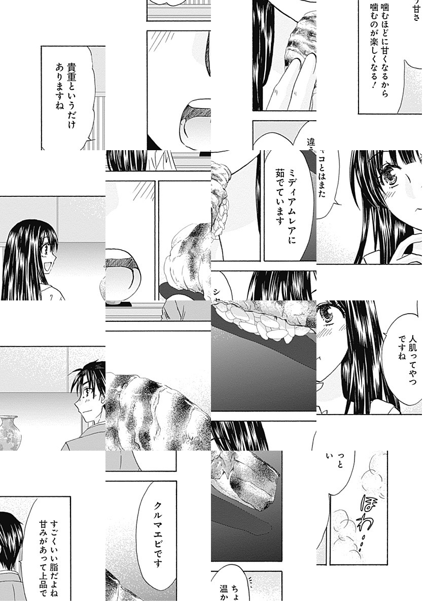 子供のころから食べることが大好きで食品メーカーに就職した水野雫。ストレス発散の月イチの食べ歩きで、六本木で出会ったやたら寿司に詳しいお隣さんは…なんと上司の宇田川だった! 細かすぎる性格の宇田川が苦手だった雫だが、宇田川の食べ歩きを内緒にする代わり一緒に寿司屋巡りをすることに⁉