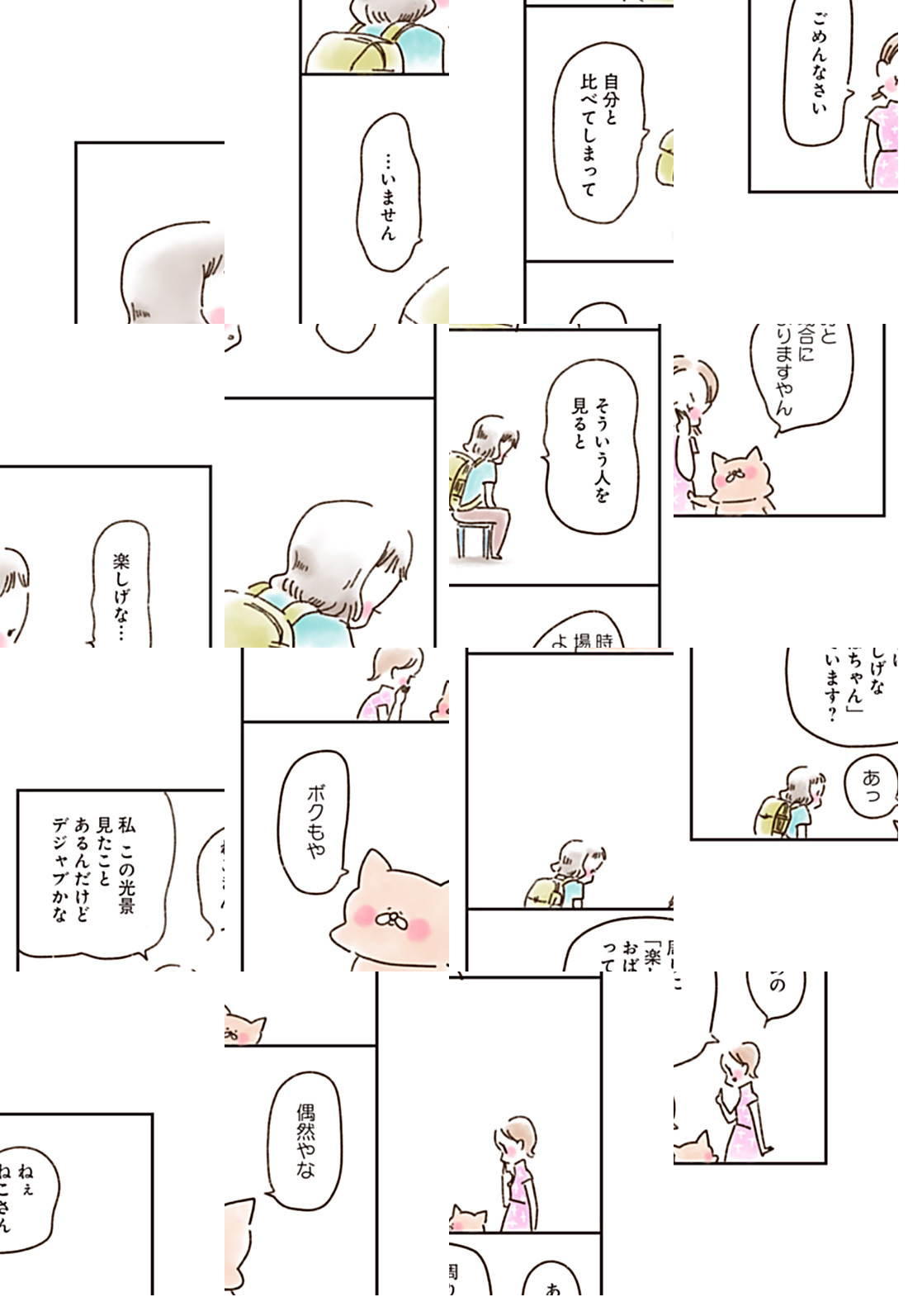 ねこさんが開いた「話聞きます」屋さん。そこを訪れる様々な人たちのグチや悩みをねこさんが聞いてくれて、何だか心が軽くなっていくお話。ねこでよければ話聞くで~。