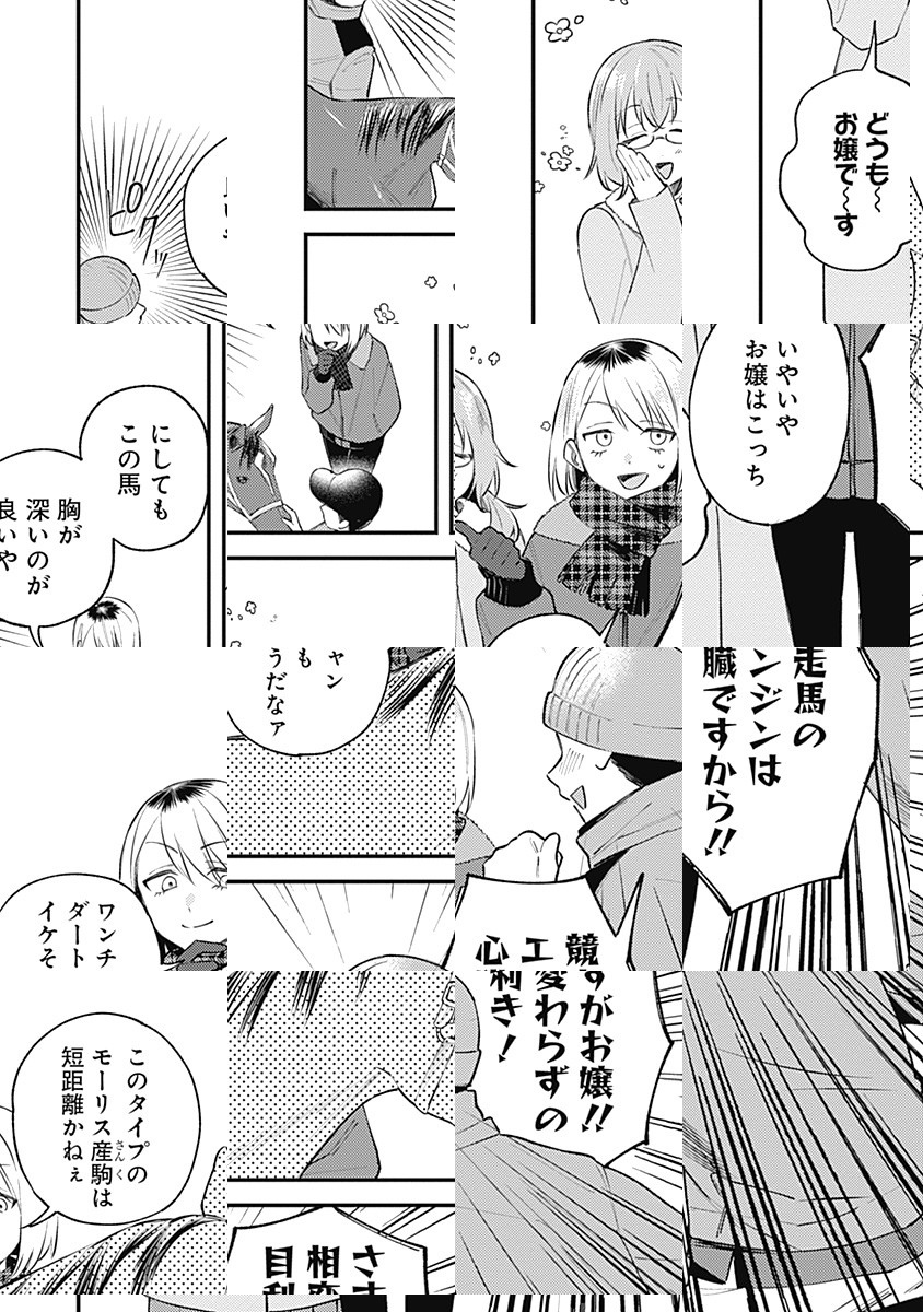 「八万円の家賃を折半すれば……月々4万円勝ちから競馬ができる!」 とルームシェアすることになった競馬好き女子大生の愛と恵那。 いつものようにダラダラと競馬中継を観つつネット投票で馬券を買い、ディープな競馬話に花を咲かせるも、お互いに自分といて楽しいのだろうかと疑問に思い…!? 正反対の二人が織りなす競馬×同棲ストーリー!